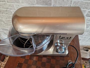 Impastatrice - planetaria Tuttofare, multifunzioni, a 6 velocità, dotata di ciotola in acciaio di 5 l, coperchio parasprizzi, gancio a foglia, spirale e frusta.