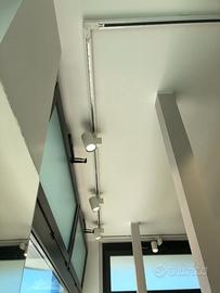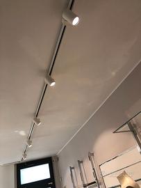 Composto da: 18 faretti LED – 46W, 3250 lumen, luce 4000K Binari elettrificati: 6×3 metri + 1×2 metri 3 faretti spot per camerini – PAR16, GU10, dimmerabili Tutto in ottime condizioni e perfettamente funzionante. **Impianto pagato circa 2980€. “Come da foto, luce uniforme ideale per negozio/showroom/studio o casa.” Vendo a prezzo fortemente ribassato per realizzo. Ideale per negozi, studi, esposizioni o casa.
