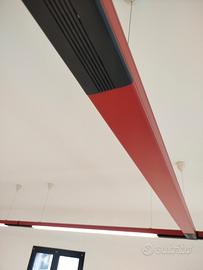 Vendo impianto di illuminazione modulare a sospensione per negozio o ufficio. L’impianto, attualmente montato su un’area di circa 126 m quadri, è composto da 55 metri lineari di struttura, 28 unità da 197 cm, 3 cieche e 14 unità di connessione. Ogni unità è predisposta per neon da 126 cm. L’impianto è perfettamente funzionante. Nota: una unità è priva della copertura di plastica e di quella metallica sui collegamenti. Non si vendono unità singole, solo l’intero impianto