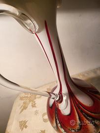Rara e scenografica brocca artistica in vetro di Murano, caratterizzata da un'altezza monumentale di 42 cm. Video dettagliato disponibile se interessa scrivetemi.Il pezzo è un capolavoro di tecnica vetraria, realizzato con la complessa lavorazione a 'festoni' (o piume) in stile Fenicio.