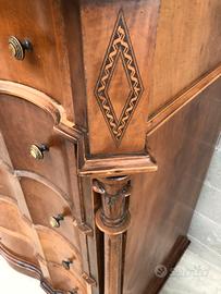 Imponente cassettone'800 in noce 5 cassetti.