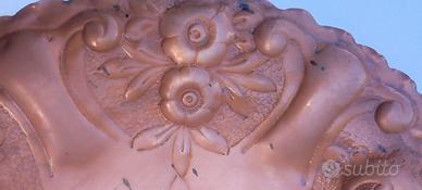 piatto in rame diametro 29 cm non ho tolto le macchie per lasciare la patina dell età , ma sono in superficie che con una pulita si tolgono , mancante di un piedino