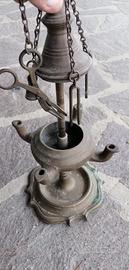 Incensiere d’epoca in ottone, con base decorata e corpo centrale a più beccucci per bruciare l’incenso.