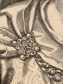 Incisione antica "Albia Terentia Othonis Mater" di Aegidius Sadeler II (1568-1629). Raffigura Albia Terenzia, madre dell'imperatore Otone, con raffinata acconciatura perlata e ricchi drappeggi. Dettagli squisiti e iscrizioni latine la esaltano. Ottime condizioni, testimonianza dell'arte incisoria fiamminga del XVII secolo. Un'opera storica e di grande eleganza, perfetta per collezionisti. Aggiungi un pezzo di storia romana e arte barocca alla tua collezione.