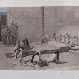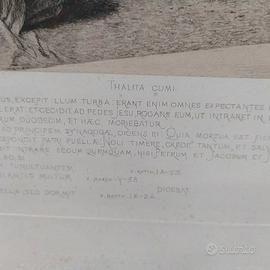 Rappresenta il celebre episodio evangelico della risurrezione della figlia di Giairo, con Gesù che pronuncia le parole 'Thalita cumi'. L'opera mostra un momento di grande intensità emotiva, con un vivace uso del colore e una composizione ricca di personaggi in preghiera e lutto. L'incisione, tratta dall'omonimo dipinto di Morelli esposto alla Promotrice di Napoli, consolidò la reputazione dell'artista come uno dei più innovativi del suo tempo. Realizzata da Antonio Piccinni, questa rara stampa testimonia l'importanza storica e artistica del loro sodalizio artistico e culturale. Un pezzo imperdibile per collezionisti, appassionati di arte ottocentesca e di soggetti sacri, perfettamente conservato nonostante alcuni segni del tempo. Un’occasione unica di possedere un’opera di elevato valore storico e artistico.
