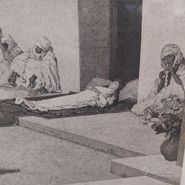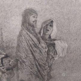Rara incisione originale di Domenico Morelli, 'Thalita Cumi', 1874.