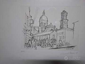 PDA di Dante Salamini (1932-2000) è stato un artista, incisore, designer e pubblicitario di Reggio Emilia, noto anche come pittore e acquerellista. Ha realizzato molte illustrazioni, specialmente paesaggi urbani e montani, con diverse tecniche come olio, acquerello e incisione, e ha usato il suo talento a beneficio del Circolo Tennis di Canali e per i "Quaderni dell'Ermellino". Dimrnsioni 50x36, con cornice 54x40