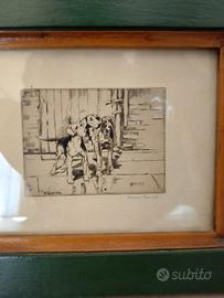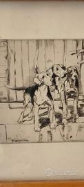 Bella incisione all'acquatinta con cornice. Viene rappresentata con un numero di tre cani Segugi. Degno di nota è l'Artista Arminell Morshead ( 1889 - 1966 ). Le misure sono : Altezza cm. 21. Larghezza cm. 25 .