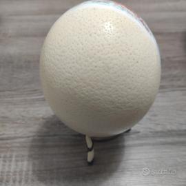 uovo di struzzo inciso a punta secca e colorato con acrilici completo di tripiede per appoggio ideale per arredare come centro tavolo con figure elefanti con certificazione di autenticità