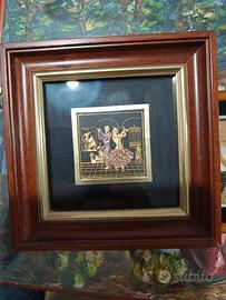 Vendo due incisioni d'epoca in oro con cornice una raffigurante Don Chisciotte e Sancho Panza, Toledo, Spagna, Damasco, L'altra due ballerini di Flamenco