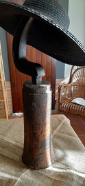 Vecchia incudine da ciabattino in legno e ferro battuto, alta 63 cm, da arredo in casa e negozio, in una vetrina da usare anche per attaccare cappelli. Da ritirare sul posto a Milano