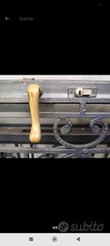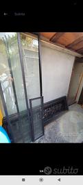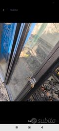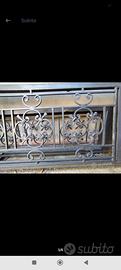 vendo inferriata porta finestra in ferro battuto e vetro già smontata con due ante simmetriche e vasistas in alto. motivi floreali sulle ante. maniglia e serratura apribile da entrambi le parti. vetro antisfondamento. Misure del telaio 155x255. altezza vasistas 32,5