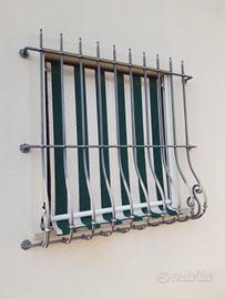 Inferriate in ferro battuto per 5 finestre al piano terra, le prime due (più grandi) anche con tende da sole (tempotest bianco/verde) come da foto.