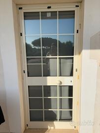 Vendo n*2 porte finestre in alluminio, segni di usura, portone principale le cerniere sono usurate e fanno un po di aria in alto, vetri ok