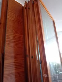 vendo in blocco infissi in legno di pino con doppi vetri maniglie in ottone ci sono porte finestre a 1 anta a 2 e a 4 più finestre utili per cambio infissi utilizzo vetri o anche solo il legno x cornici