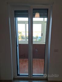 Infissi in alluminio verniciato, finitura bianco ral 9010 lucido, profilo multicamera a taglio termico, sezione 65/75 mm, tutte con apertura vasistas, complete di tapparelle in alluminio verniciato con motori elettrici e zanzariere: