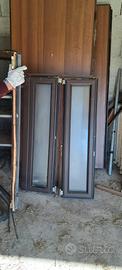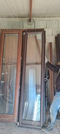 Vendesi set di infissi porte finestre e finestre usate, comprese di telaio o botti, tutto già smontato. Sono infissi realizzati da un artigiano, di colore marrone, con parte interna in legno.