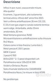 Infissi nuovi 3 finestre e 1 portafinestra. Pvc 6 camere vetri 331.1rgon 331 Ribalta anta arrotondata 82mm. Prezzo vedi foto