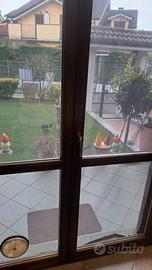 Vendo numero 5 infissi porta finestra doppi vetri telaio in legno scuro.