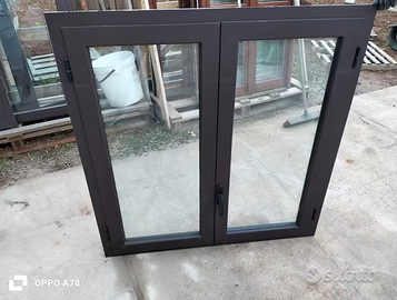 Alluminio R40, colore marrone raffaello, accessori nero, vetrocamera con gas. Dimensioni: 1155mm x 1240mm (LxH)