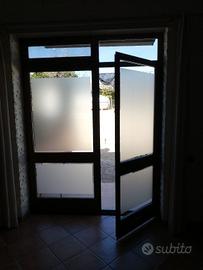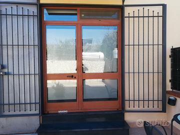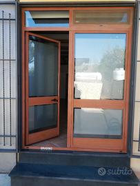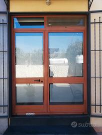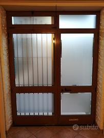 Infisso in alluminio color legno a due battenti con vetro camera con pellicola satinata. H. 2.50 x L 2..00 circa