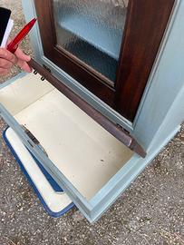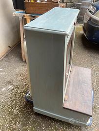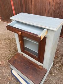 Splendido inginocchiato in noce completamente restaurato e modernizzato , aggiunta di vetro nuovo ,fondo nuovo , ripiani interni , serratura nuova , e applicazioni di collag su parte posteriore con carte vintag originale Una vera chicca da mettere in bagno , cucina o ingresso No perditempo solo amanti del genere e intenditori. Grazie