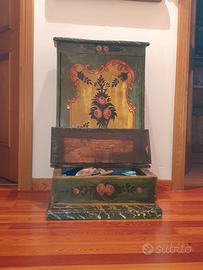 Vendo questo inginocchiatoio realizzato e dipinto a mano da artigiano del Cadore anni 50. Misure: base h 21,5 larghezza 53,5, profondità 50. H complessiva mobile: 90,5