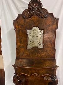 Rarissimo inginocchiatoio ferrarese antico in noce e rafica. All occasione si trasforma in confessionale ad iso privato . Epoca meta 800. Misura aperto h 155 cm . Oggetto raro e splendido .