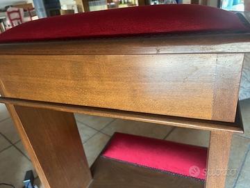 Vendo elegante inginocchiatoio in legno, perfetto stato di conservazione. Lavorazione con intaglio a motivazione religiosa su entrambi i lati. Struttura solida, seduta imbottita, colore rosso porpora, senza difetti. Visionabile