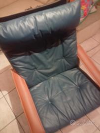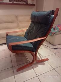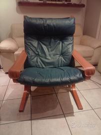 Poltrona scandinava disegnata da Ingmar Relling negli anni '70, mod. Siesta, in struttura lignea in teak e cuscineria in vera pelle. Ottime condizioni di conservazione. Solo ritiro a carico dell' acquirente.