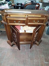 Vendo mobile ingresso in legno pregiato,intarsiato,con due cassetti e due ante,provvisto d serratura,mancante d chiave. In ottimo stato,come nuovo. Completa la soluzione uno specchio con cornice intarsiata,priva d qualunque segno d usura. Consegna solo a mano per via d pesi e ingombri.