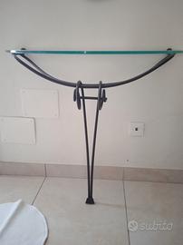 Trattasi di ingresso in vetro e ferro battuto con specchio ovale con gancio sempre in ferro battuto color antracite ideale per appoggiare svuota tasche e piccoli oggetti d'arredo