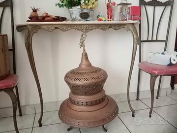 2 sedie, specchio,appendiabiti, tavolino con marmo rosa, braciere.