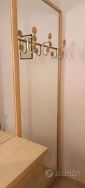 Mobile ingresso con grande specchio e cassettino e mensola. Dotato di attaccapanni. Colore rovere chiaro.