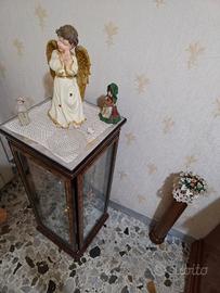 Ingresso con mensole vetro, specchio e portaombrelli, mobiletto porta gioie con base di appoggio in marmo.