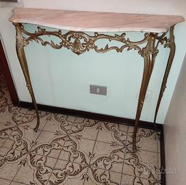 Set ingresso vintage in ottone composto da: Appendiabiti con arazzo; console con ripiano in marmo; sedia foderata; specchio. In condizioni come da foto. Vendesi in blocco. Ritiro a mano, non spedisco. 3493535697