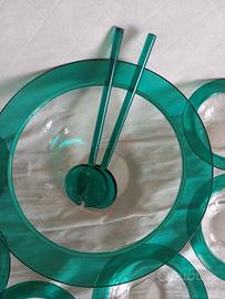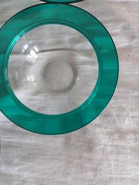 Insalatiera trasparente con bordi verde Marca GUZZINI anni 90 Con coppette n.6 dello stesso colore.