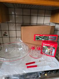Vendesi insalatiera e Kit olio,aceto, sale e Pepe, della Guzzini, nuovo, materiale di ottima qualità, molto capiente e funzionale.