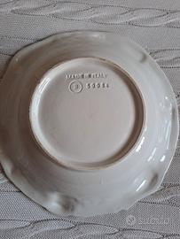 Ciotola, insalatiera in ceramica dipinta a mano. diametro 65, made in Bassano con forchettone e cucchiaione sempre in legno e ceramica. Perfetta come nuova mai usata.
