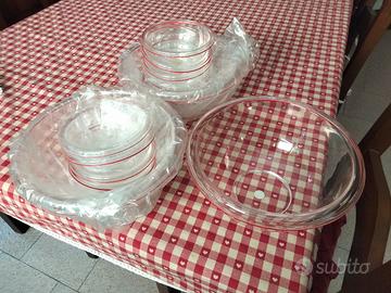 3 insalatiere guzzini trasparenti con bordino rosso più 10 coppette mai usate