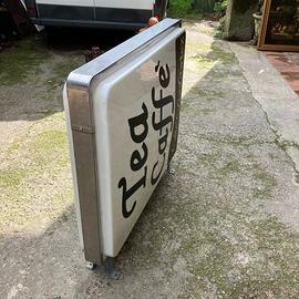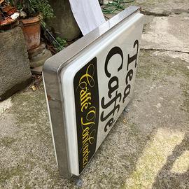 Vecchia insegna da bar originale con cornice in metallo e pannello in plastica. Dimensioni 114×107×17 cm.