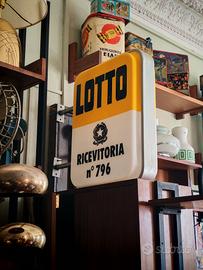 Insegna bifacciale del LOTTO con attacco a bandiera regolabile in lunghezza, con collegamento elettrico interno al braccio inferiore.