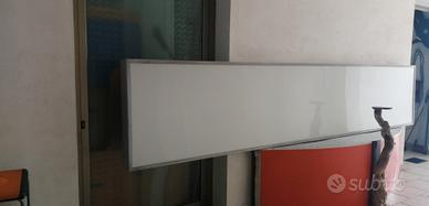 Insegna sa esterno, ex illuminazione a tubi fluorescenti, ricondizionata per tubi a led, operativa (corpi lampada nn compresi nel prezzo). Per collocamento a muro, sia verticale che orizzontale, ottima fattura. Ottima anche per applicazione di stampa persinalizzata. Materiali: alluminio, plexiglass bianco opalino. Misure: (L / H / P) 4m x 80cm x 14cm