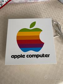 Splendida insegna luminosa con storico logo Apple e scritta “Apple Computer”. Oggetto ideale per collezionisti, appassionati del mondo Apple o per arredare studio, negozio o postazione gaming con un tocco iconico e retrò. L’insegna è nuova, in condizioni perfette e immacolate, mai utilizzata. Illuminazione uniforme e molto scenografica. Dimensioni:29 x 29 cmSpessore circa 6/7 cm Pronta da esporre. Disponibile per ulteriori foto o informazioni. Spedisco