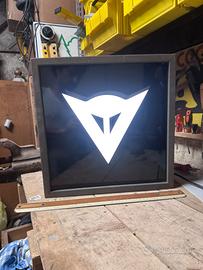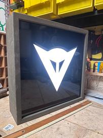 Vendo insegna luminosa *vintage originale Dainese*, con *logo frontale illuminato* e *scritta serigrafata laterale*. Restaurata professionalmente nella parte elettrica, con *nuovo tubo fluorescente* perfettamente funzionante. *Caratteristiche:* - Dimensioni: *40x40 cm*, spessore *12 cm* - Struttura solida, finitura effetto grezzo-industriale - Cavo elettrico incluso - Pezzo raro, ideale per collezionisti, arredo garage, officina, showroom moto Oggetto unico per veri appassionati. Prezzo richiesto: *€220* Preferibile ritiro a mano, ma posso spedire con imballo accurato. No perditempo