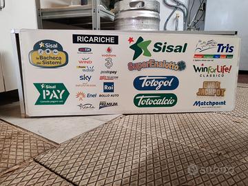 Vendo insegna completa di illuminazione a basso consumo per Bar Tabacchi Rivendita Sisal in ottime condizioni misure 140 x 45 x 12 cm.