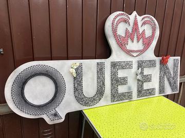 Insegna con scritta Queen applicando la tecnica String Art , dimensioni 151x74,5x4 cm
