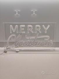 Come da oggetto vendo insegna luminosa led effetto neon natalizia con scritta Merry Christmas. L'insegna può essere alimentata tramite una qualsiasi porta USB (può funzionare anche tramite Power bank in modo da poterla posizionare in qualsiasi punto della casa) Perfetta per arredare la vostra casa durante le festività natalizie. L'insegna è praticamente nuova in quanto ricevuta come regalo e mai utilizzata. Per correttezza, segnalo delle lievi imperfezioni sulla parte superiore trasparente come da foto (si vedono solo in controluce) e non inficiano il funzionamento della stessa