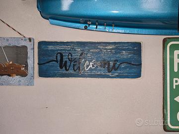 insegna artigianale effetto vintage pronta per essere appesa . "welcome" dimensioni 33.5 x 12 cm