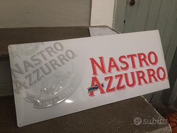 1 Insegna luminosa Nastro Azzurro, 1 tabella Nastro Azzurro da parete in alluminio, 1 orologio da parete Nastro Azzurro funzionante.